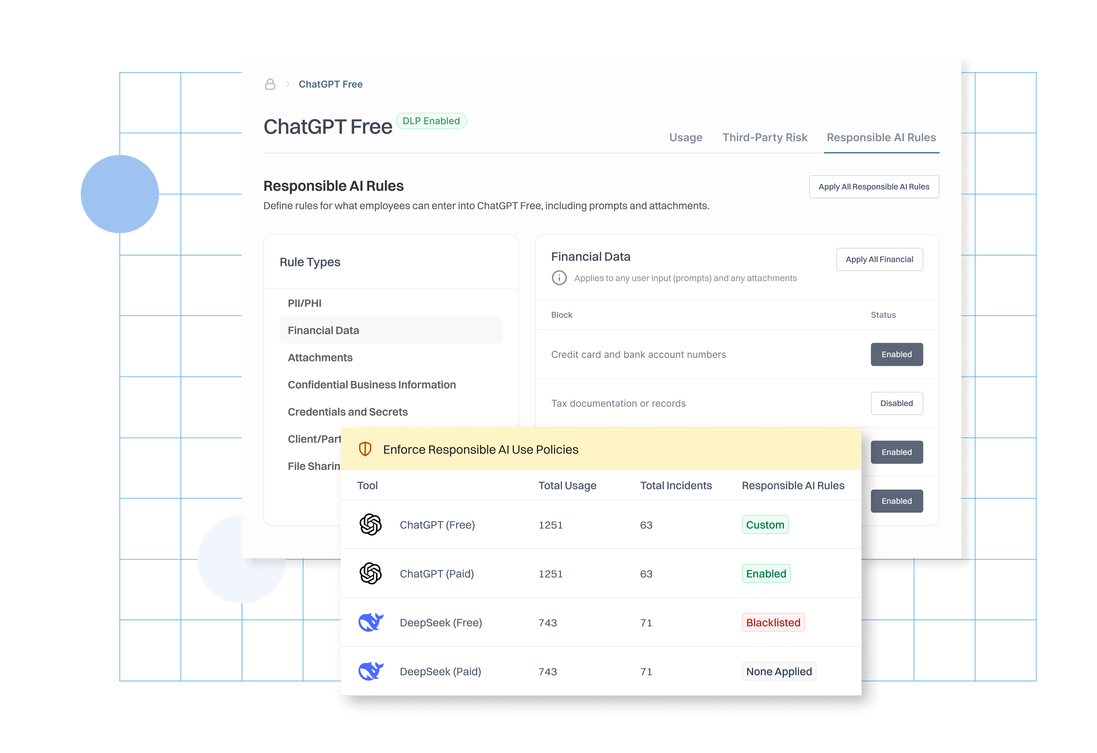 Ensure the DLP rules across different shadow AI applications align with your acceptable use standards and responsible AI policies.